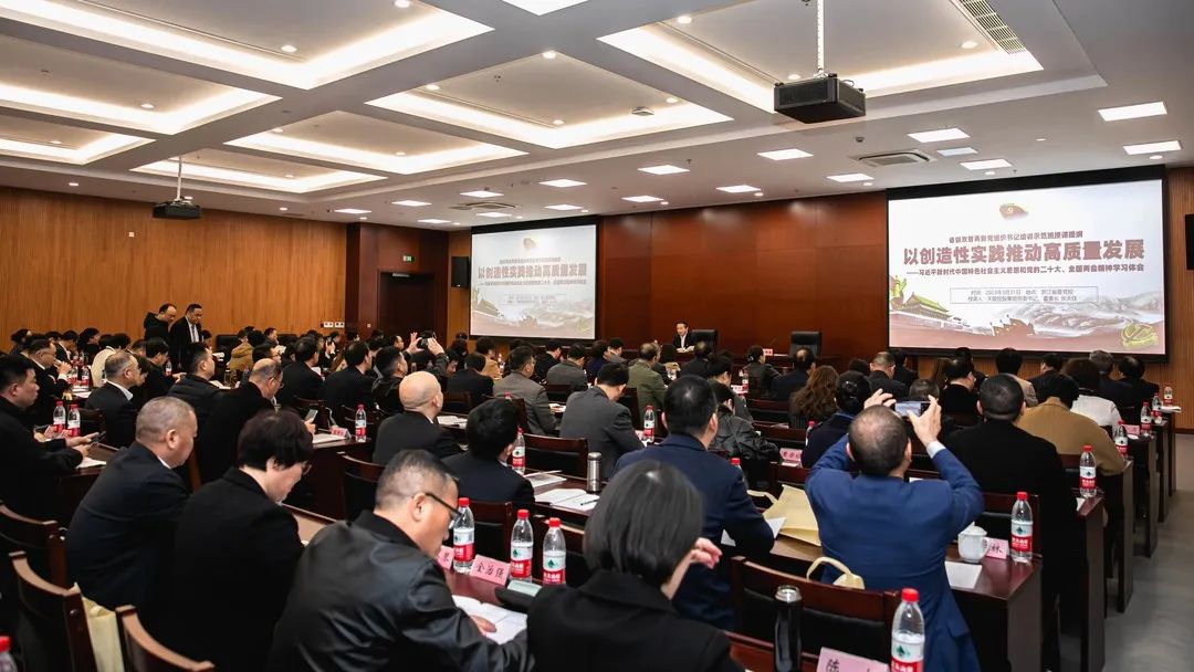 张天任董事长授课主题是《以创造性实践推动高质量发展》。他表示,习近平新时代中国特色社会主义思想、党的二十大、全国两会都贯穿着“高质量发展”这条主线。他结合浙江高质量发展的实践,BB贝博艾弗森高质量发展的历程,从十二个方面对“以创造性实践推动高质量发展”进行全面解读。